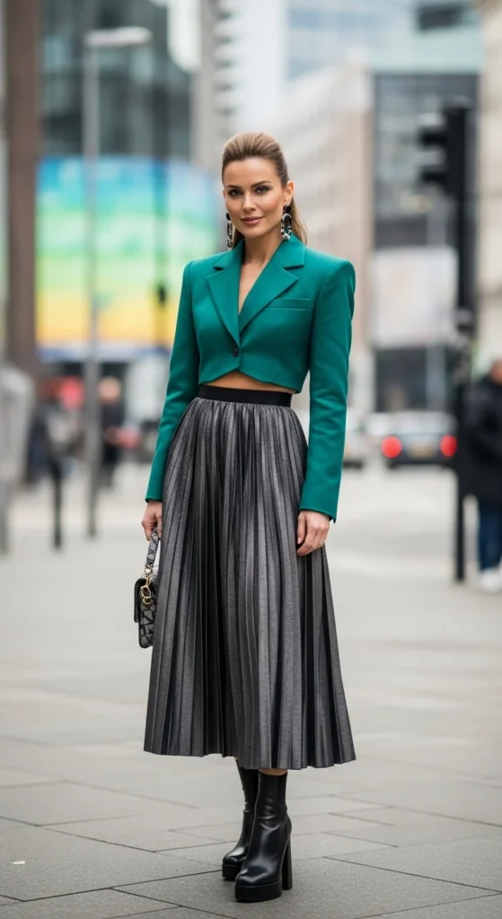 This is where most people go wrong. High-waisted bottoms need intentional tops to keep the look flattering.