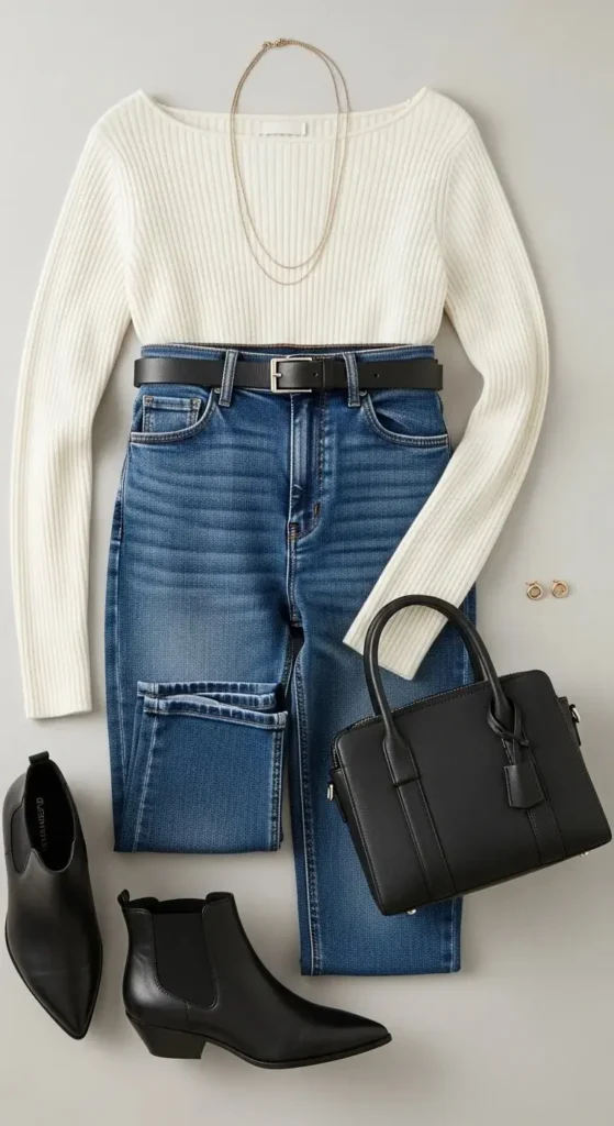 A flattering high-waisted outfit isn’t just about cut—it’s about details.