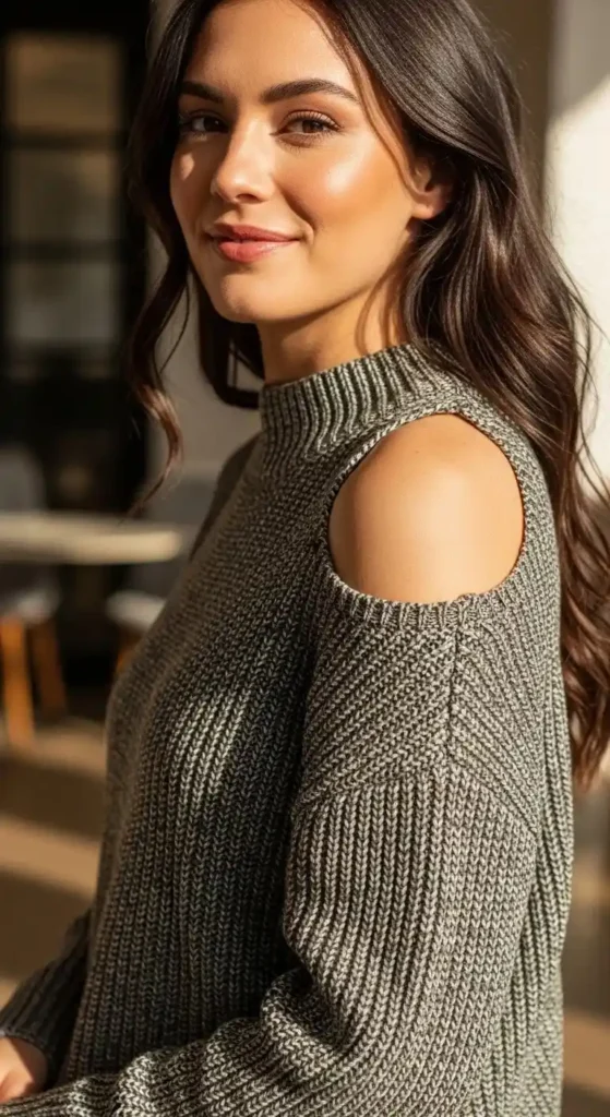 Cutout knits offer a way to show a little skin while staying mostly covered. A shoulder cutout is a subtle but stylish detail. Look for knits with ribbed edges around the cutouts to prevent fraying.