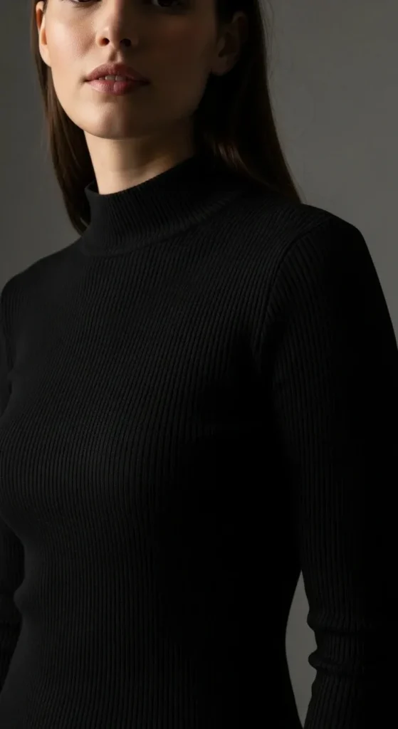 Mock necks provide the warmth of a turtleneck without the folded bulk. They sit slightly lower on the neck for a cleaner appearance. This style works perfectly under blazers or denim jackets. Choose a fine-gauge knit for easy layering.