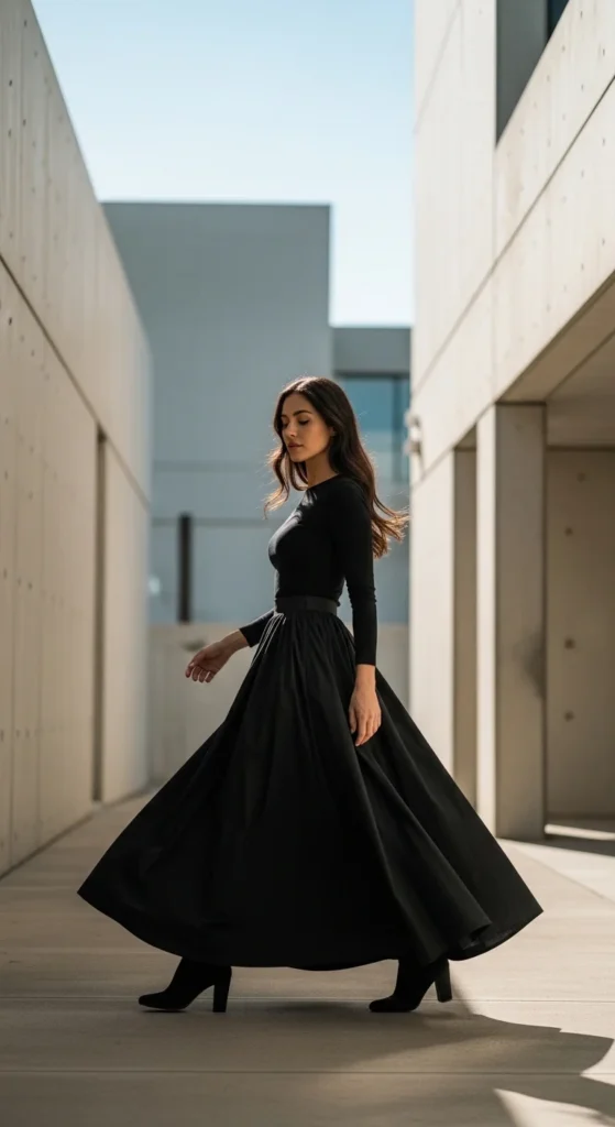 10. All-Black Maxi Skirt Outfit