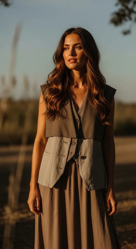 Vests add structure. Keep the base outfit simple.