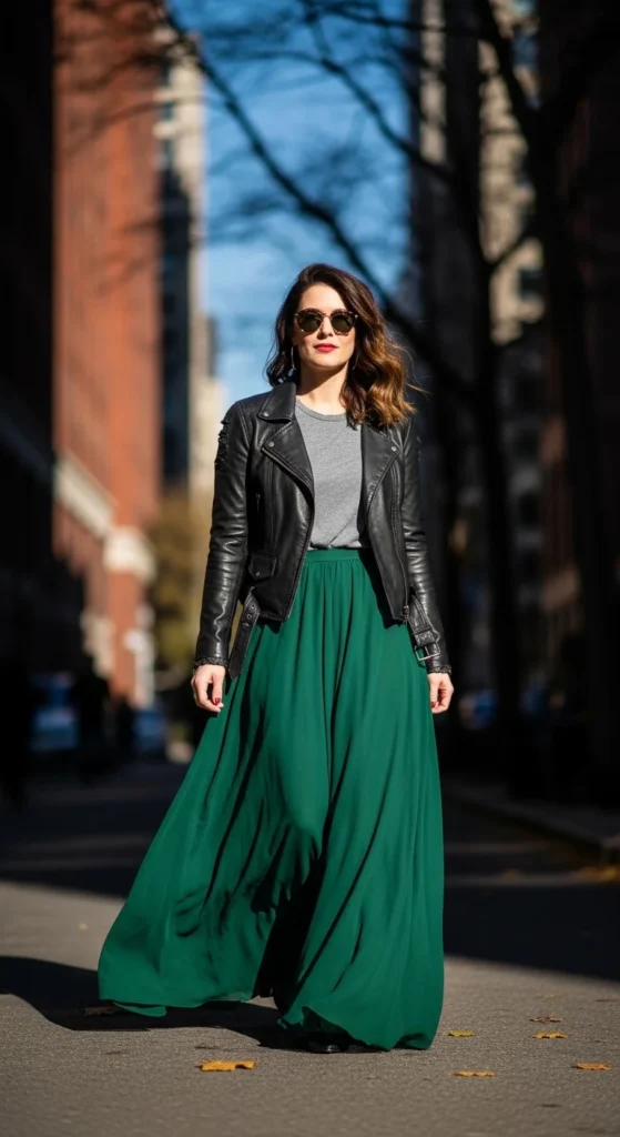 20. Maxi Skirt with a Leather Jacket