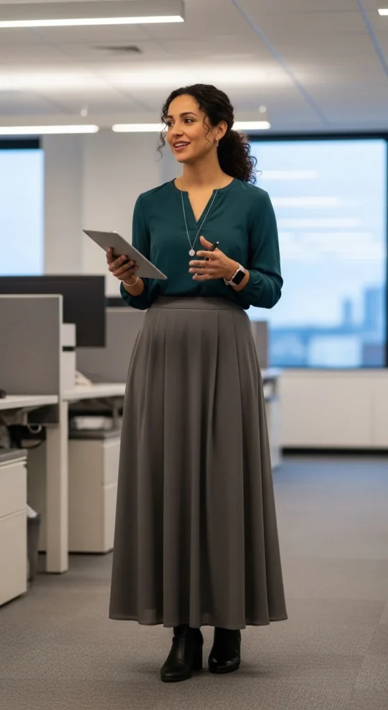 21. Office-Friendly Maxi Skirt Look