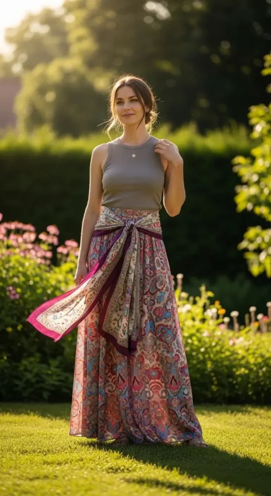 22. Maxi Skirt with a Scarf Accent