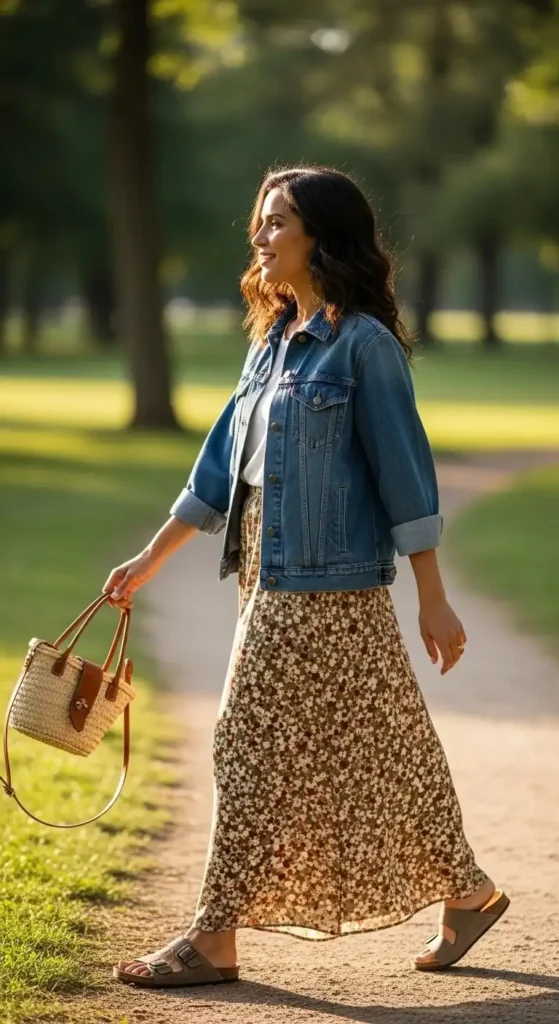 4. Denim Jacket and Maxi Skirt Combo