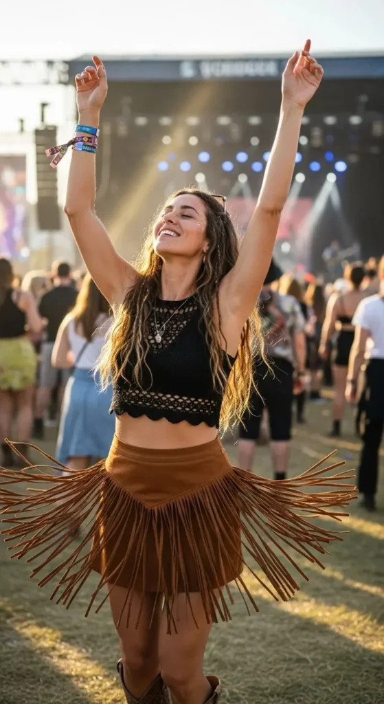 For festivals or events with a more creative atmosphere, look for a skort with unique details. A skort featuring fringe along the hem or panels, or one made of faux suede with tooled textures, instantly creates a boho-festival look. Pair this statement bottom with a simple top that won’t compete, like a crocheted crop top, a simple black tank, or a vintage graphic tee tied up. Complete the ensemble with comfortable ankle boots or sturdy sandals that are ready for walking and dancing all day. Look for unique second-hand or affordable boutique options to find a textured skort for this specific style.