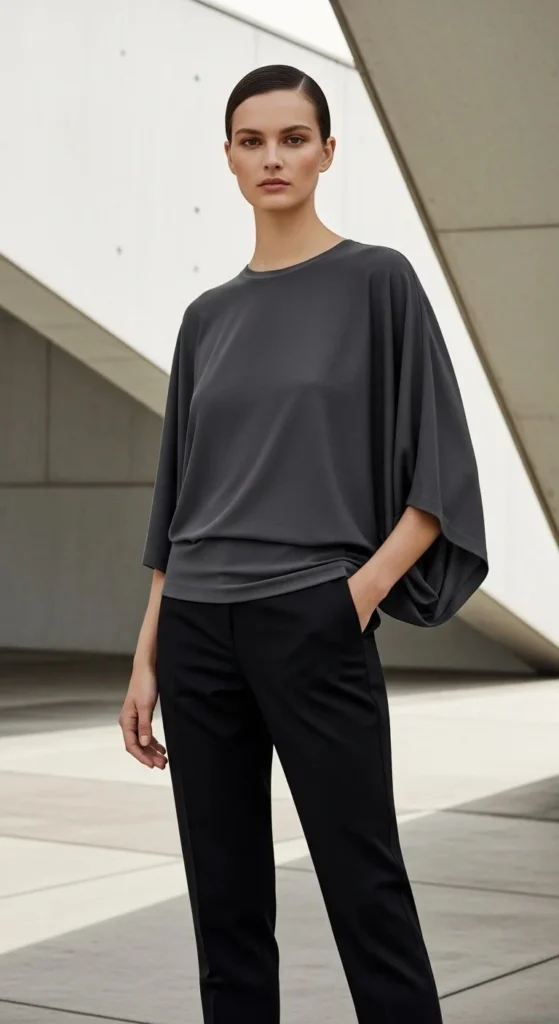 Wear a dolman top with slim-fit joggers. You get to feel like you are wearing pajamas while looking ready for a meeting. Comfort is the biggest selling point of this style.