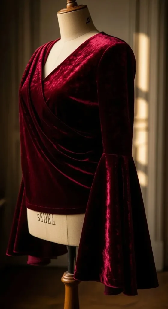 Velvet flared sleeves bring rich texture and weight to your outfit. The heavy fabric swings beautifully as you move. Look for crushed velvet for an edgy, 90s-inspired look.