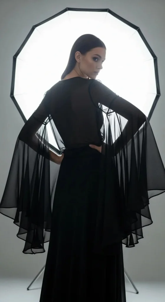 Sheer chiffon sleeves add a delicate, ghostly movement to your arms. They are perfect for layering over simple camisoles. Look for dark, moody colors for a sophisticated evening look.