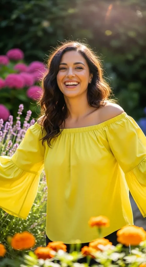 Flutter sleeves on an off-the-shoulder top create a sweet, romantic silhouette. They draw attention to your collarbones while remaining comfortable. Look for elastic necklines that stay securely in place.