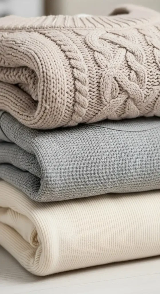 These pieces sit close to your body, locking in heat while creating a smooth base for outer layers. Neutral shades like beige, black, gray, or cream make mixing and matching easier.