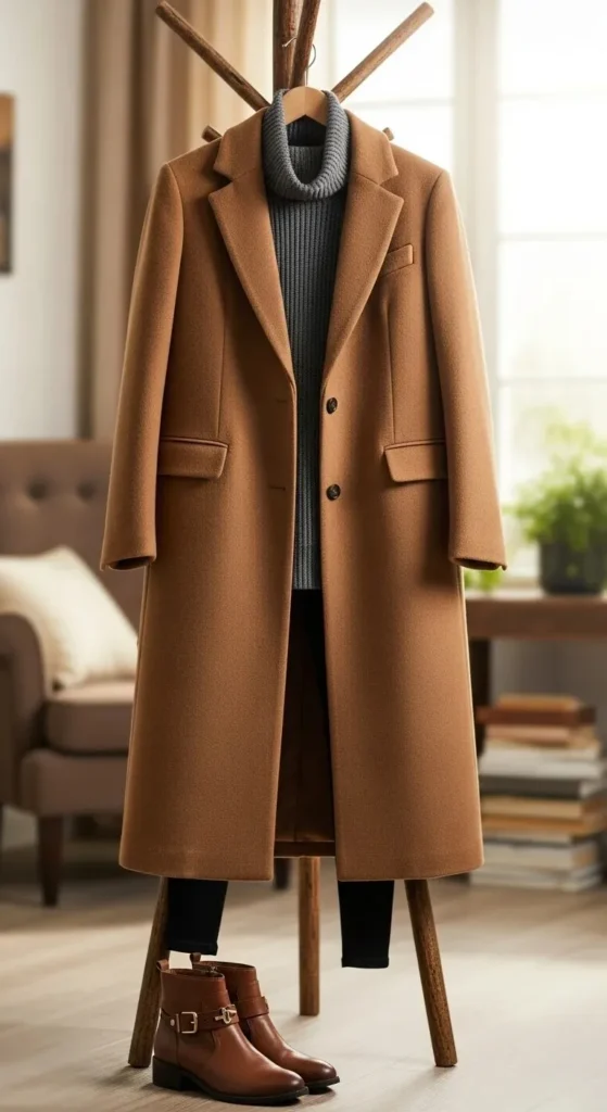 Mixing textures—like a smooth coat over a chunky sweater—makes even simple outfits look thoughtfully styled.