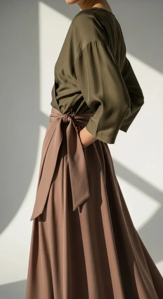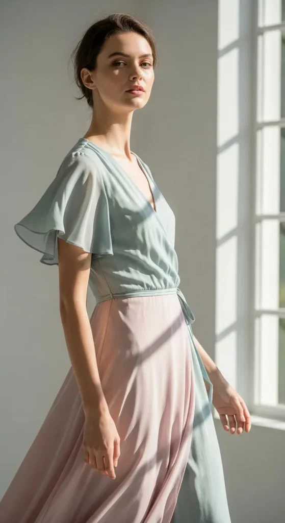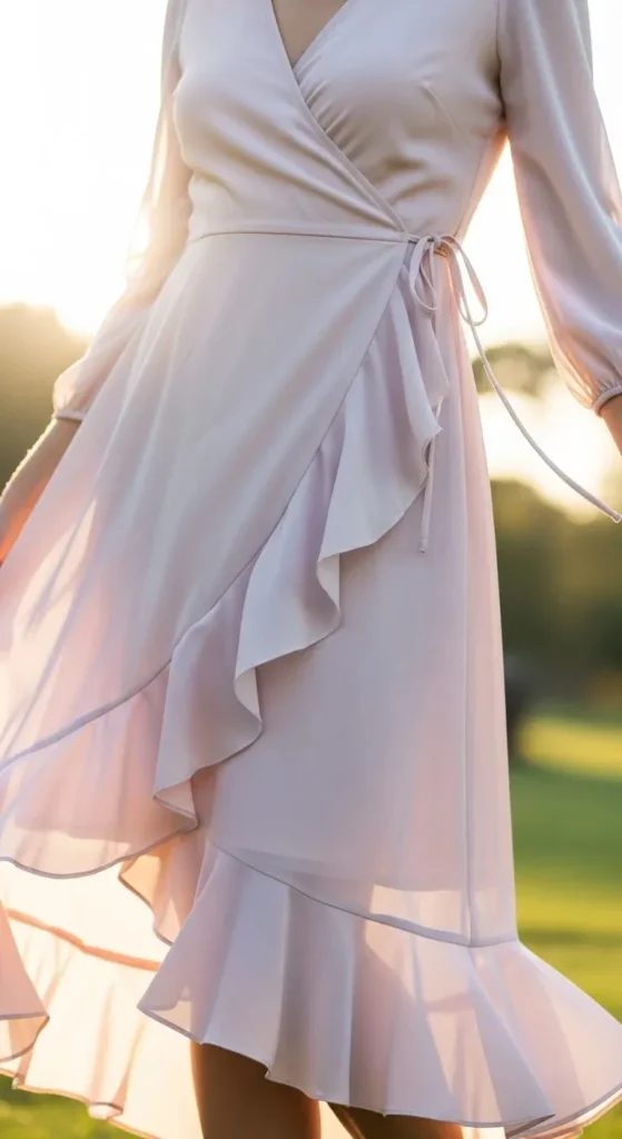 Soft drape helps the dress follow your shape comfortably. Look for fabrics with movement. This style feels relaxed and wearable. Adjust the tie as needed and keep styling simple.